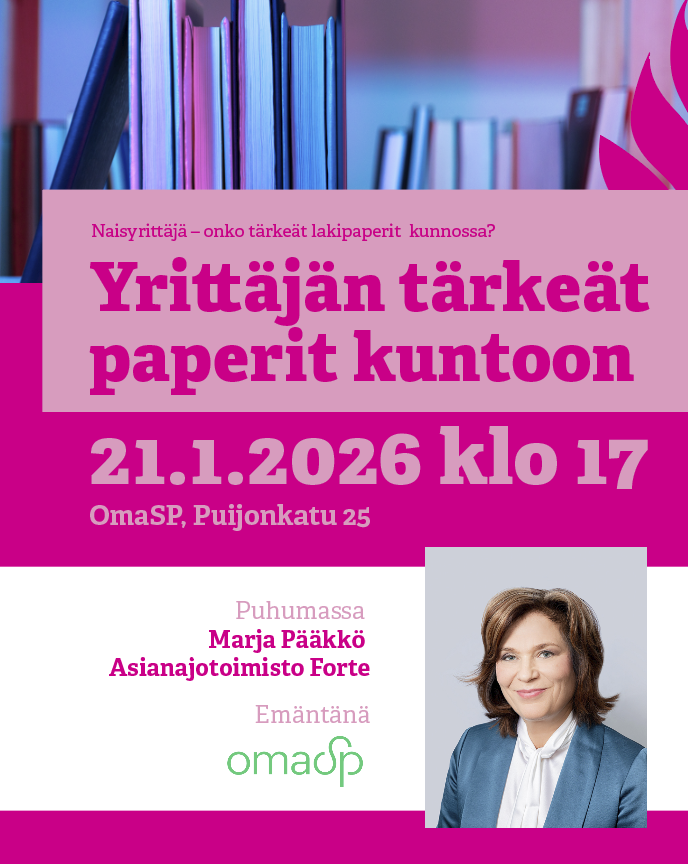 Meitä on jo 50 ja toivotamme uudet jäsenet ja kannatusjäsenet lämpimästi tervetulleeksi mukaan! Saat etuja jäsenyrityksiltämme. Suomen Yrittäjänaisten kautta saat mm. laki- ja taloudellista neuvontaa.